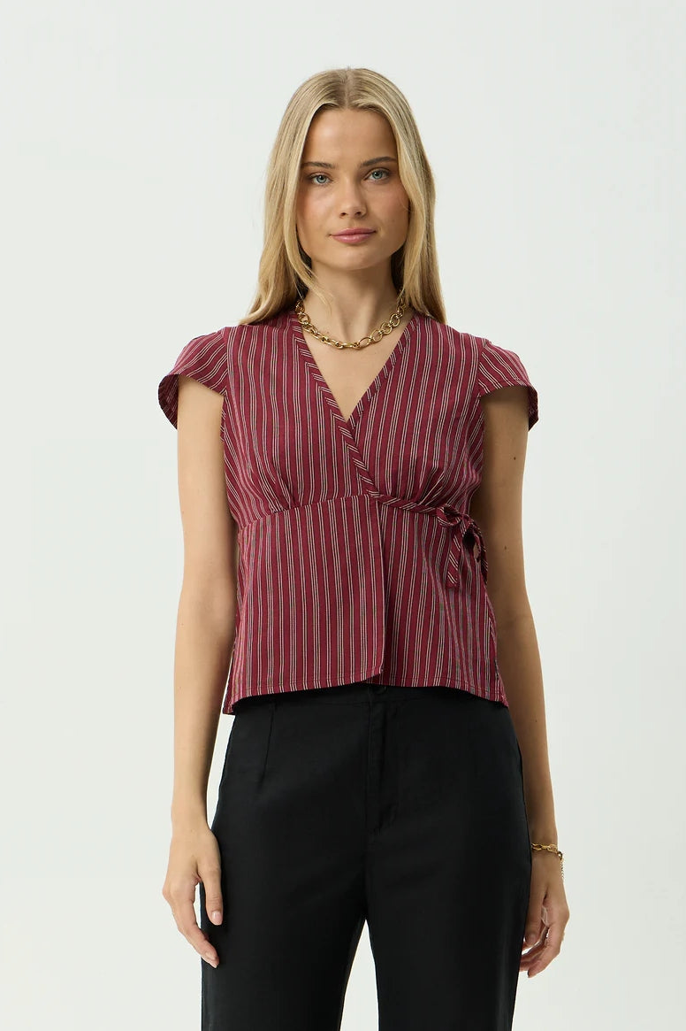 Afends Ledger Wrap Top | Burgundy Stripe