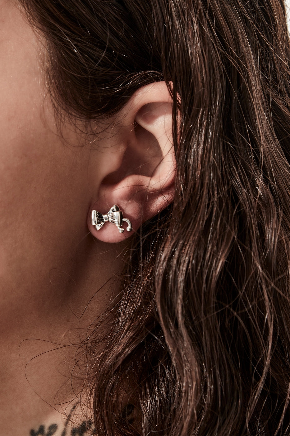 Reimagined from our signature Double Bow — a best-selling icon for over 20 years — the Pierced Bow Earrings in sterling silver introduce a sharper silhouette and subtle pierced barbell detailing. Sculptural and composed, they frame the lobe with a sense of proportion and polish. A refined evolution of a house classic.